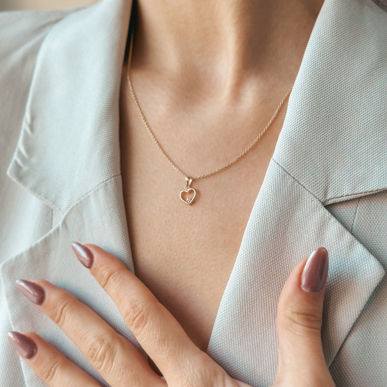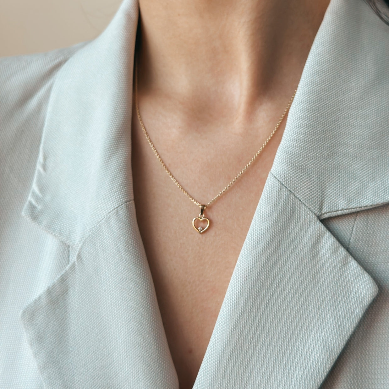 This charming 14K yellow gold heart-shaped pendant is adorned with a central sparkling zirconia, a symbol of elegance and refinement. Its open and minimalist design adds a touch of delicacy to any outfit, making it a perfect accessory for both special occasions and everyday wear. It is the ideal gift to express affection and care for a loved one.