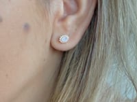 These earrings are a finely crafted 925 silver jewelry piece, made with natural Moonstone and small sparkling zircon stones. The height of an earring is 8x6 mm, and the size of the natural stones is 6x4 mm.