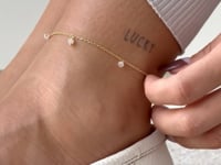 Silver Ankle Bracelet Golden Gem Droplet - Moonstone