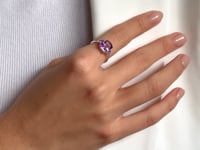 Jillian - Amethyst, Tanzanite - a fine piece of jewelry, crafted from a faceted Amethyst stone, along with two small tanzanite stones. Their colors complement each other, forming a balanced whole of color. The jewelry has a height of 9 mm and is rhodium plated.