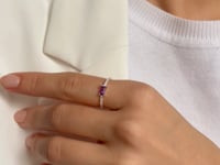 Precious with amethyst stone and zircons, as delicate as it is surprising. The amethyst stone measures 5x2.5 mm, and the ring thickness is 1.5 mm.