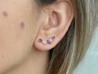 The jewelry with a height of 20 mm and a width of 8 mm is made of Amethyst and Rose Quartz in different shapes and cuts.